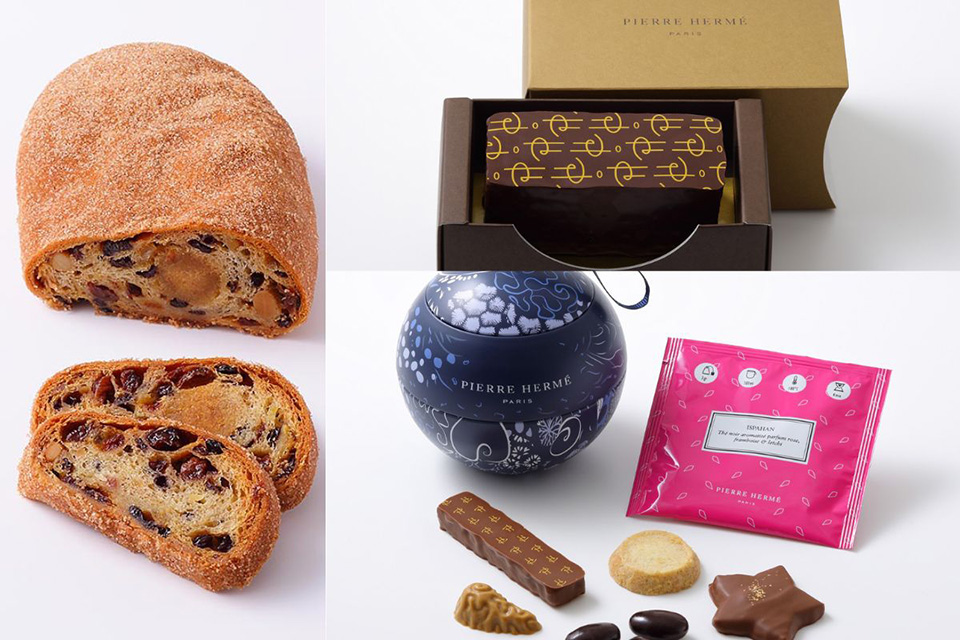 クリスマスを待ちわびながら味わう、ドイツの伝統的なブリオッシュパン『シュトレン』は、バニラやカルダモン、レモン皮やレーズン、ドライフルーツが練り込まれた生地に、シナモンシュガーをたっぷりとまとわせた「ピエール・エルメ・パリ」ならではの一品に。クリスマスツリーに飾りたくなる、見た目も可愛らしい『ブール ド ノエル』はショコラやサブレが入り、ギフトにもぴったり。そのほか、柔和な風味が広がる『パン デピス ショコラ ノワール エ ミエル』などクリスマスを彩る商品をご用意しています。
