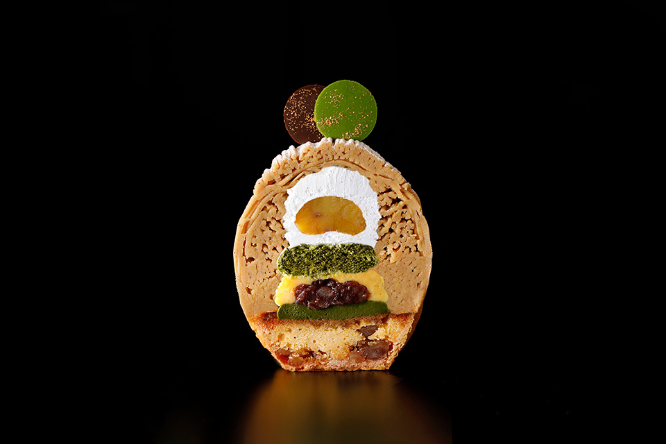 秋から冬にかけて登場する『スーパーモンブラン』は、イタリア産マロングラッセ入りアーモンドタルトに、濃厚な「抹茶カスタードクリーム」や「太陽卵のカスタードクリーム」、まろやかな甘さの「黒蜜あんこ」、そしてふんわりとした「抹茶メレンゲ」の軽やかな口当たりをお愉しみいただけます。隠し味には、青ヶ島の「ひんぎゃの塩」を使用。仕上げには、茨城県産の蒸し栗を、九州・大牟田産の濃厚な生クリームで包み込み、栗の香りと甘みを最大限に引き出しました。