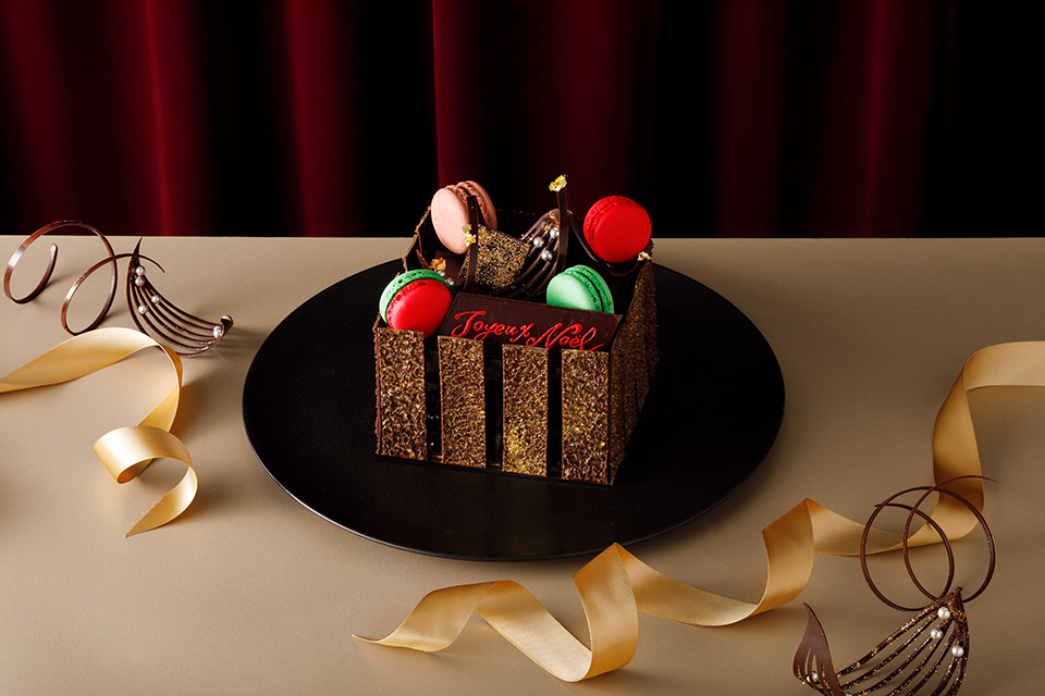 アーモンドキャラメリゼの食感をアクセントに、ダークガナッシュやミルクガナッシュ、キャラメルバタークリームなど全14層が最高のマリアージュを奏で、繊細で濃厚な味わいと煌びやかな装飾がクリスマスにぴったりの『スーパーオペラレジェール』は、濃厚で大人の味わいに仕上げました。