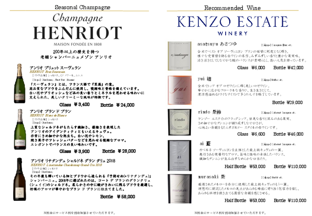 フレンチブルーム(ノンアルコールスパークリングワイン)Glass ¥3,400 Bottel ¥20,000
