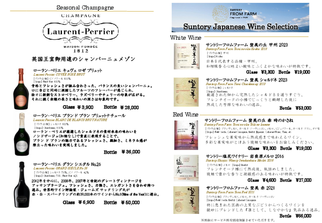 フレンチブルーム(ノンアルコールスパークリングワイン)Glass ¥3,400 Bottel ¥20,000