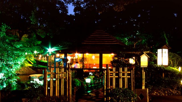 400年の歴史を有する1万坪の日本庭園の中にある小さな池。そのほとりにある「清泉亭」は、全席テーブル席となっており、よりプライベート感覚で鉄板焼をお楽しみいただけます。ご商談でのご利用や、ご接待、ご家族・親しい方との落ちついたお食事に適しています。