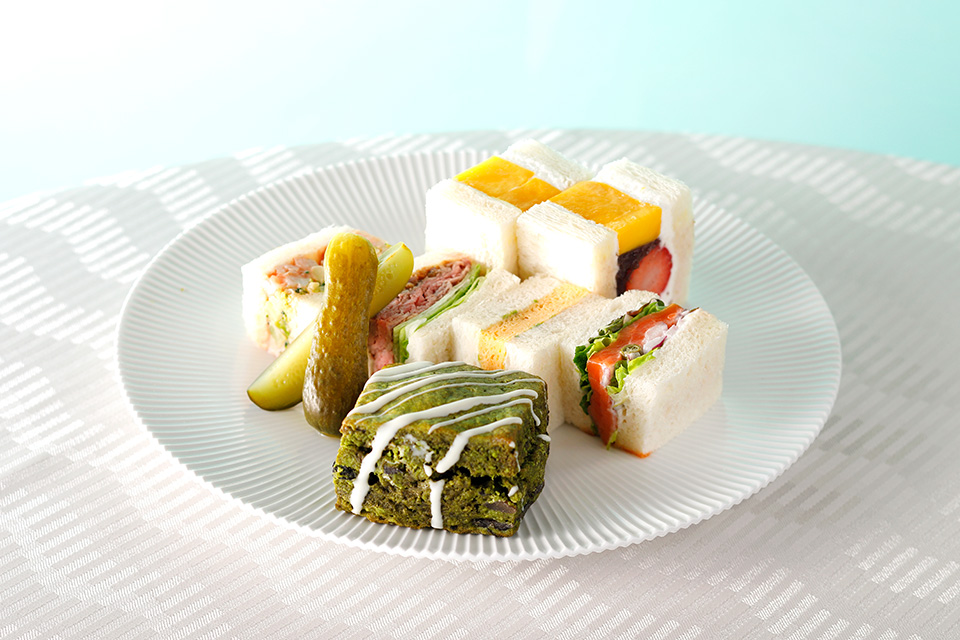 ホテルニューオータニを代表する「スーパースイーツシリーズ」のスーパーメロンショートケーキをはじめ、今が旬のフルーツを多く使用したスイーツをご用意しました。特製フルーツサンドやバラエティーサンドなど、ボリューム満載のアフタヌーンティーをお愉しみいただけます。