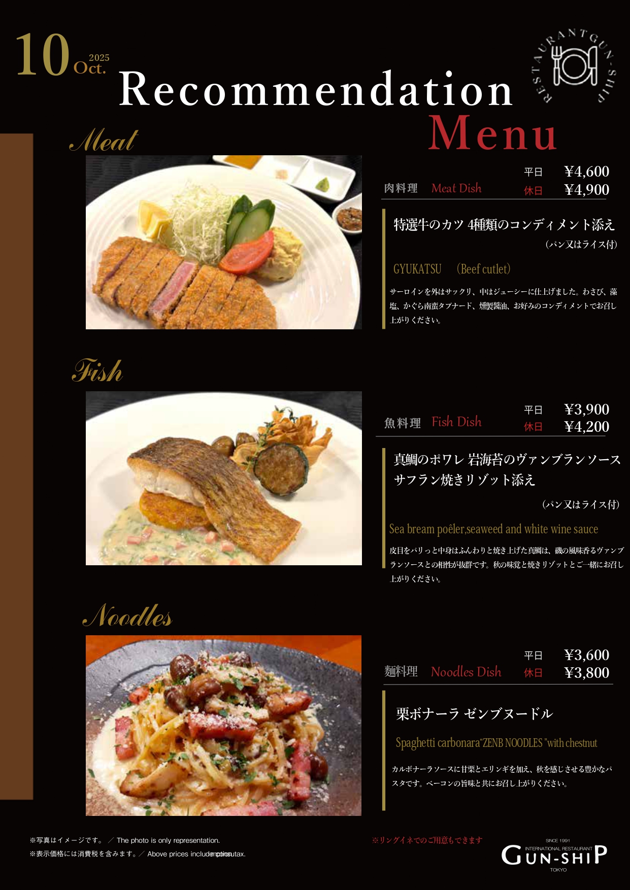 期間 :2025年10月1日(水)~10月31日(金)平日 :11:30~15:00(L.O.14:00)土日祝日:11:00~15:20(L.O.14:00)