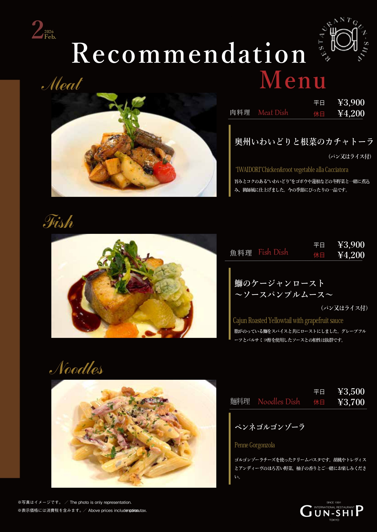 期間 :2026年2月1日(日)~2026年2月28日(土)平日 :11:30~15:00(L.O.14:00)土日祝日:11:00~15:20(L.O.14:00)