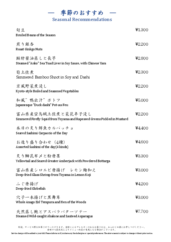 ご予約・お問合せ03-3221-2766店舗直通03-3221-2857