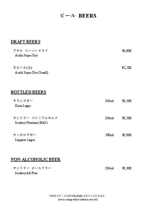 | ドリンク | ¥1,100~ |