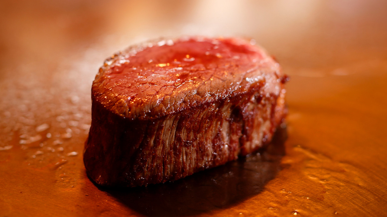 開業当初、外国人客のニーズに応えオープンしたステーキ専門店。シェフ自らが全国を巡り、生産者からじっくり話を聞き、皆さまに喜んでいただけると確信した牛だけを直接、一頭まるごと購入。神戸ビーフや宮崎牛をはじめとし、尾崎牛、くまもとあか牛など、全国から集められた最高の和牛が常時6〜8種類揃います。そしてその最高の素材を最高の状態でお召し上がりいただけるよう、熟練のシェフが代々受け継がれてきた伝統の技を施し、丁寧に調理しています。内装は落ち着いたアールヌーボー様式で、入口のショーケース内にある最高級和牛の断面の美しさが、道行く人の目を引き付けています。