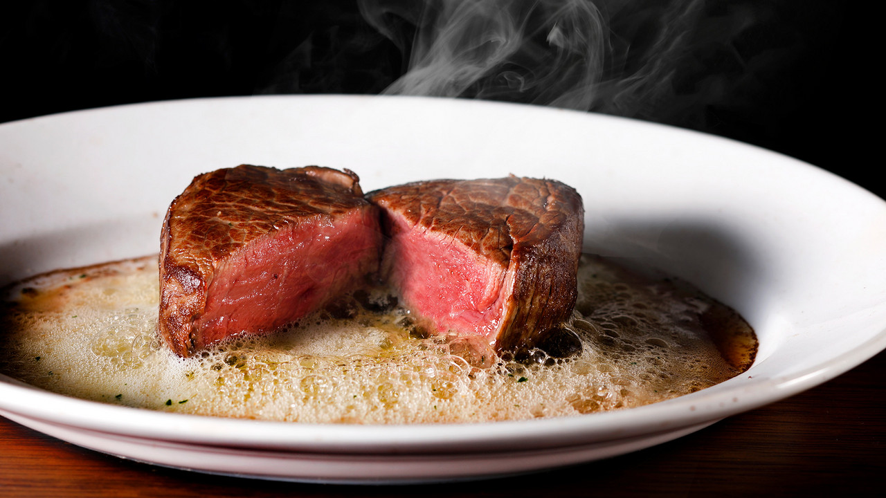 中はジューシーに、表面はカリッと焼き上げ壁を作ることで肉の旨みや肉汁を閉じ込め、 溶けたバターをしっかりとからめて口にした瞬間、バターの香ばしい香りと共に、じわっと溢れる肉汁の旨みをお愉しみいただけます。