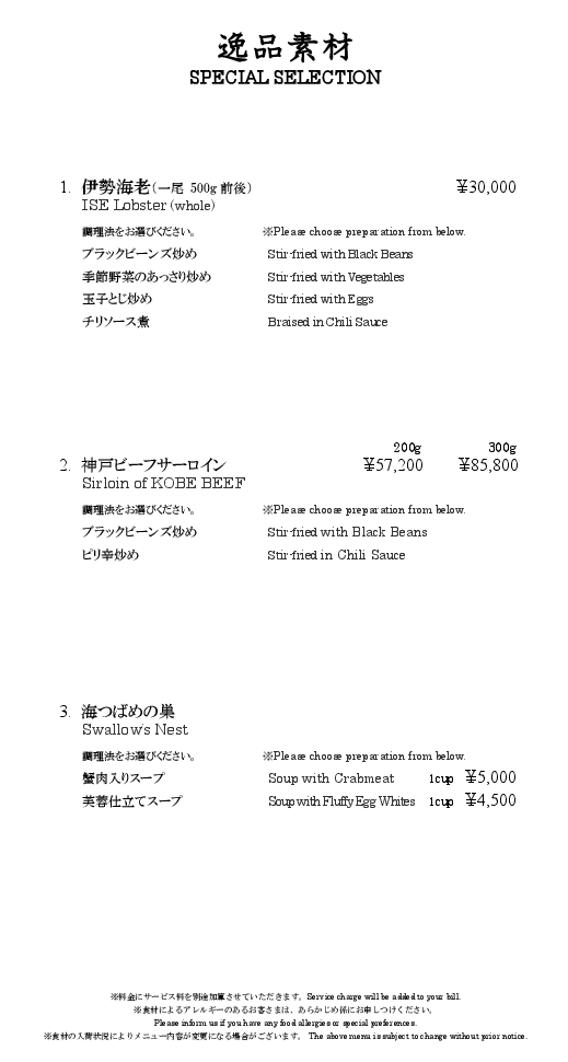 1964年の開店以来、多くの美食家に愛されてきた本格上海料理「大観苑(たいかんえん)」。黒を基調に洗練を極めた店内は、全面フルハイトウインドウの窓から、眼下に広がる1万坪の日本庭園から遠く東京タワーまでが一望に。 “王道主義”を貫くメニューは、さらにグレードアップ。特にふかひれの姿煮は、天日干しの希少で上質なものを用いるほか、伊勢海老や鮑などの特撰素材メニューから、8種類の紹興酒や、ソムリエが厳撰するワインなども充実。 料理長 黒岩利夫や、中国から招聘した料理人が本物の味をお届けします。