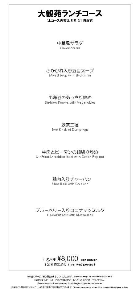 1964年の開店以来、多くの美食家に愛されてきた本格上海料理「大観苑(たいかんえん)」。黒を基調にした店内は、全面フルハイトウインドウの窓から、眼下に広がる1万坪の日本庭園から遠く東京タワーまでが一望いただけます。“王道主義”を貫くメニューには、天日干しの希少で上質なものを用いるふかひれの姿煮ほか、伊勢海老や鮑などの特撰素材メニュー、8種類の紹興酒や、ソムリエが厳撰するワインなどが充実。 料理長 黒岩利夫や、中国から招聘した料理人が本物の味をお届けします。