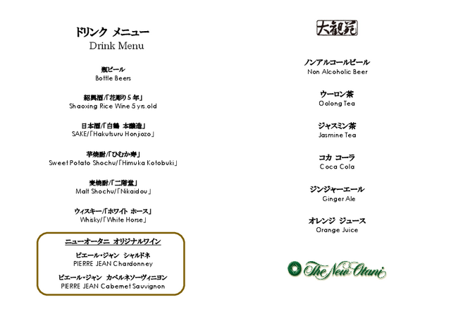 (New Otani Club、New Otani Ladiesポイントは加算されます。)