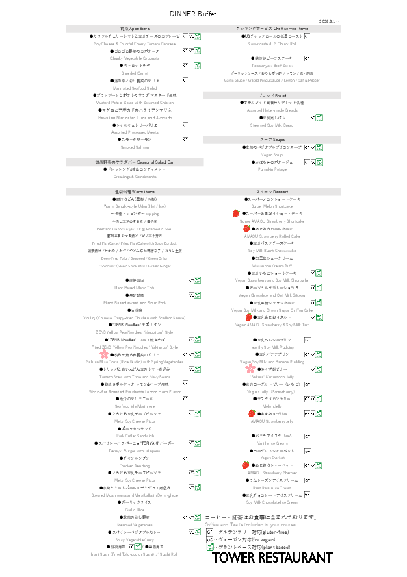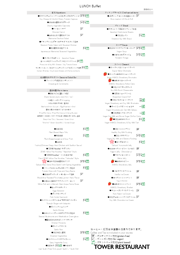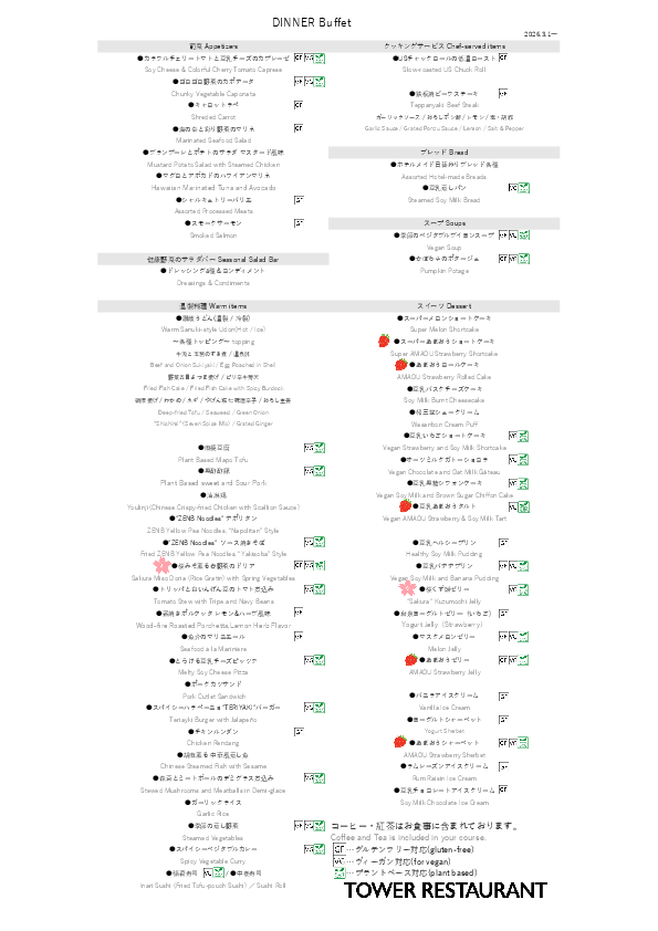 ローストビーフをはじめとするホテル王道料理と多様化するライフスタイルにあわせた「プラントベースフード」をハイブリッドスタイルでご用意しています。ガーデンタワー最上階、40階からの富士山も望む東京の絶景とと