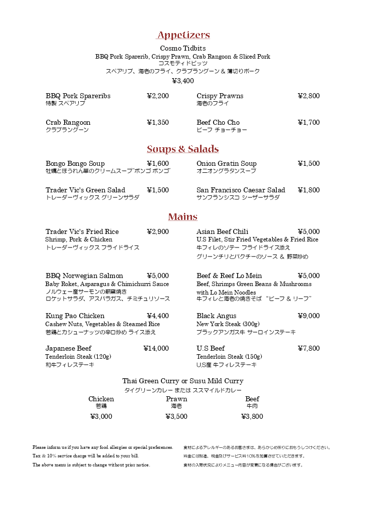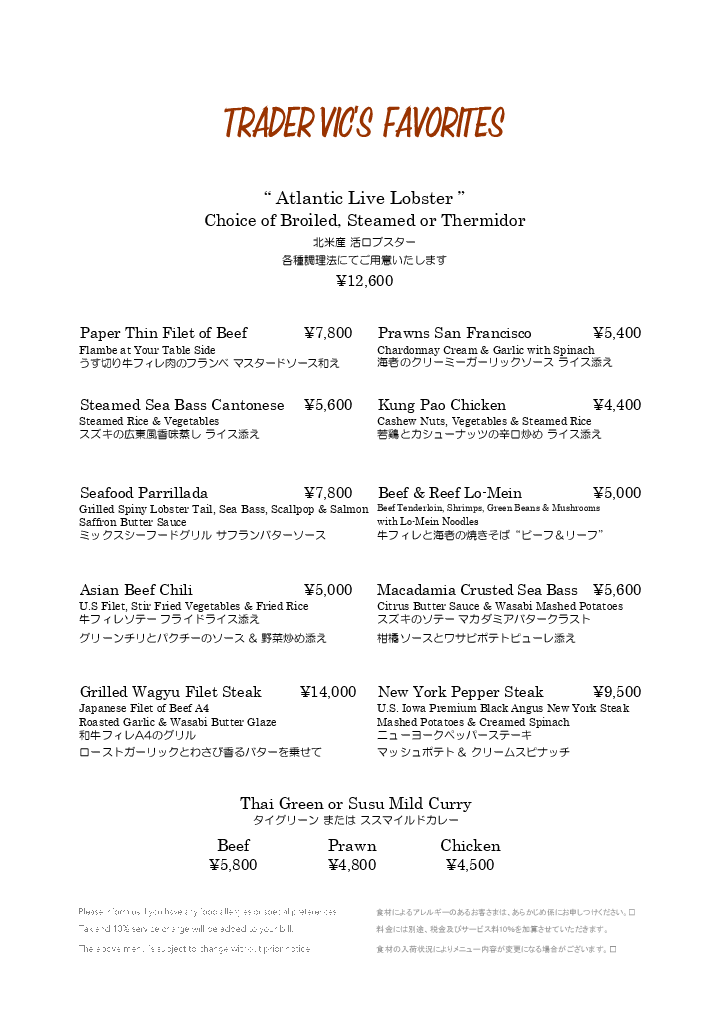 世界中の美食から学び進化を重ねてきたトレーダーヴィックスの伝統を味わい尽くす、至極のディナーをお楽しみください。