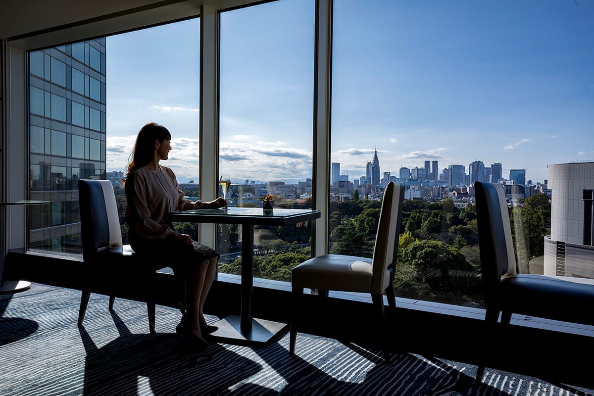 ”縁側”をイメージしたラウンジは、迎賓館、新宿の摩天楼、