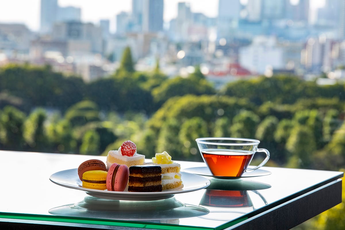 その奥に見える美しいビル群の絶妙なコントラストがゆったりとした時間を演出します。
