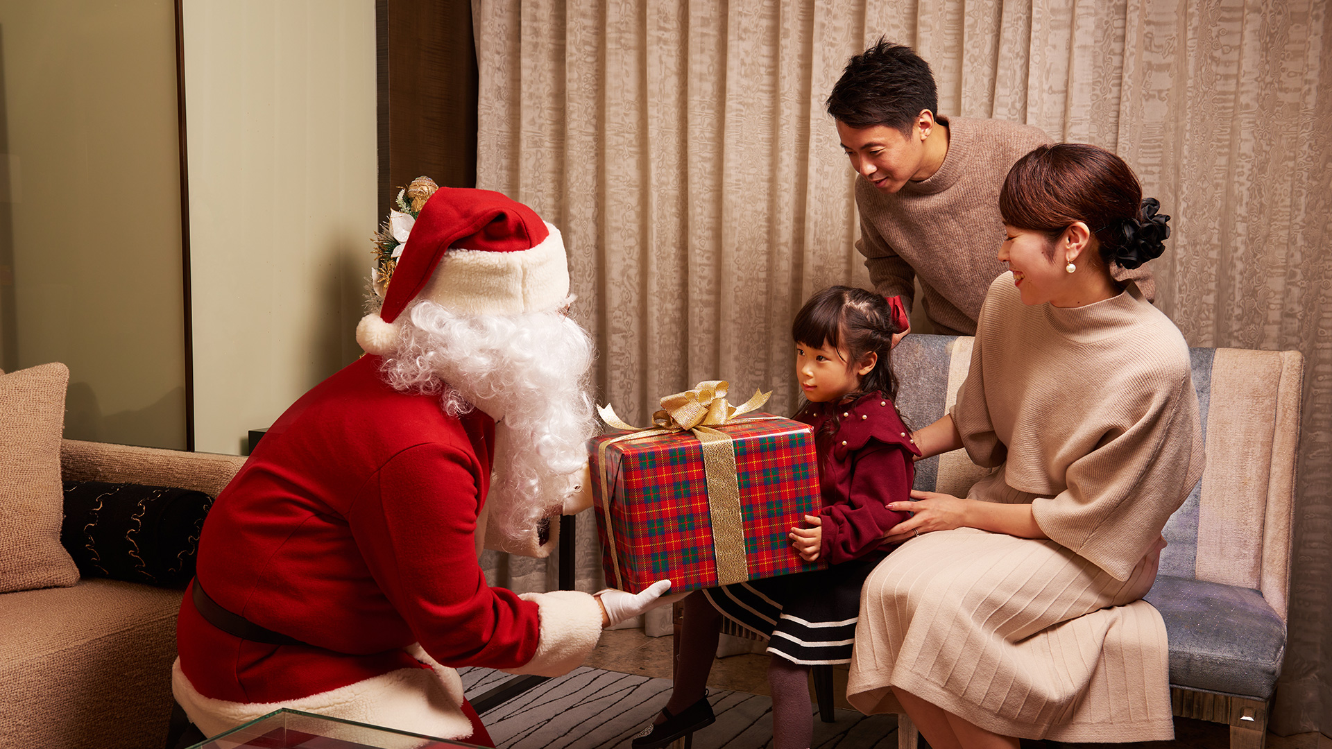 事前にお預かりしたプレゼントを、ホテルスタッフ扮するサンタクロースがお部屋にお届けいたします。