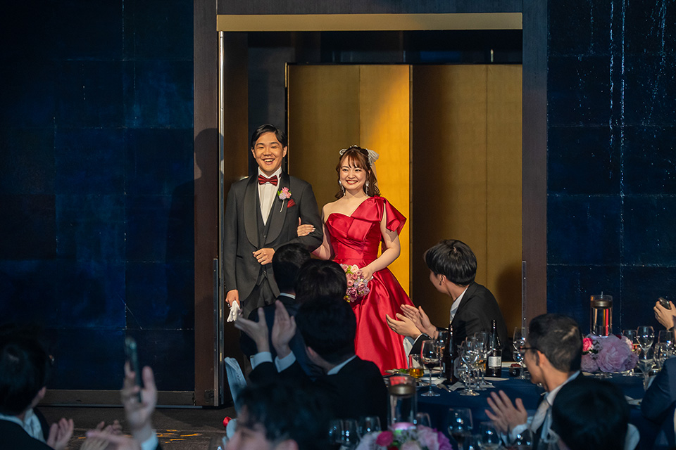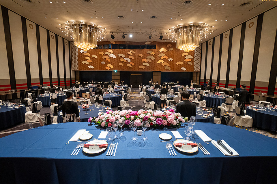 また、ホテルニューオータニといえば自慢のお庭が見える鳳凰の間というイメージがあったので、「もしここで披露宴をするなら鳳凰の間かなぁ」と思っていました。ところが、芙蓉の間で夫婦並んで高砂に座らせていただき、スポットライトを浴びながら会場全体を見渡した瞬間、「ここで披露宴をしたい!」と一目惚れしてしまい、その場で式を挙げることを決めました。