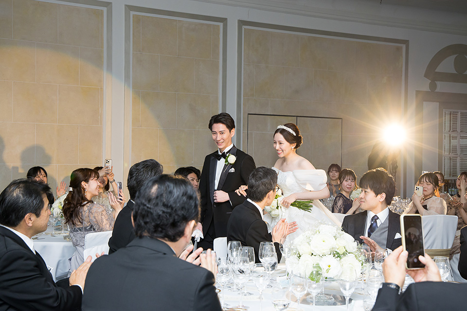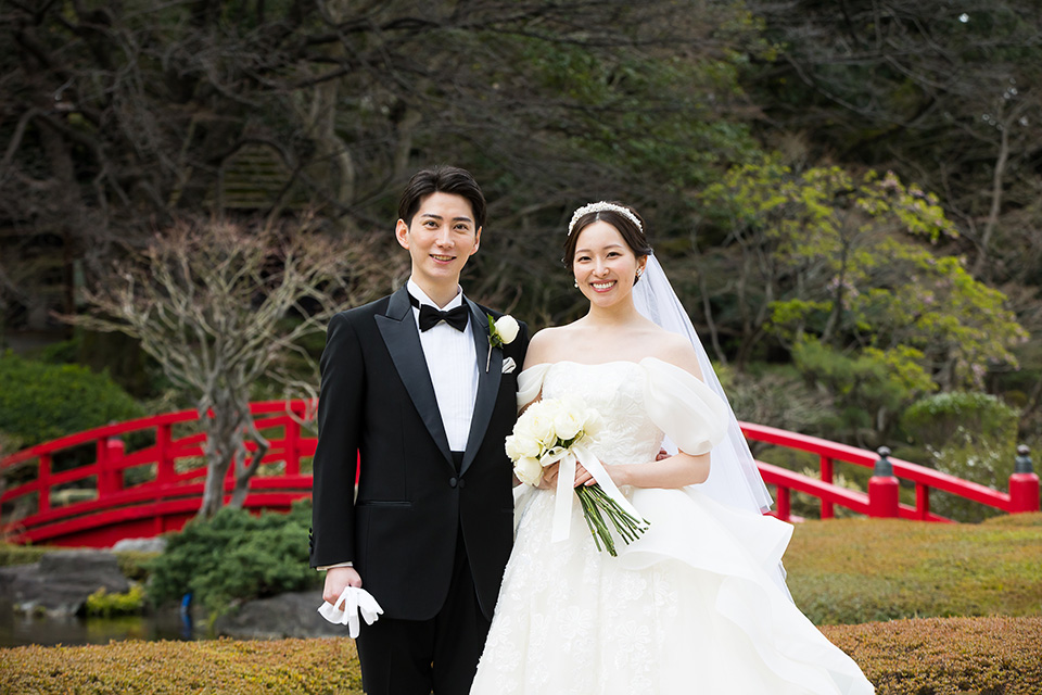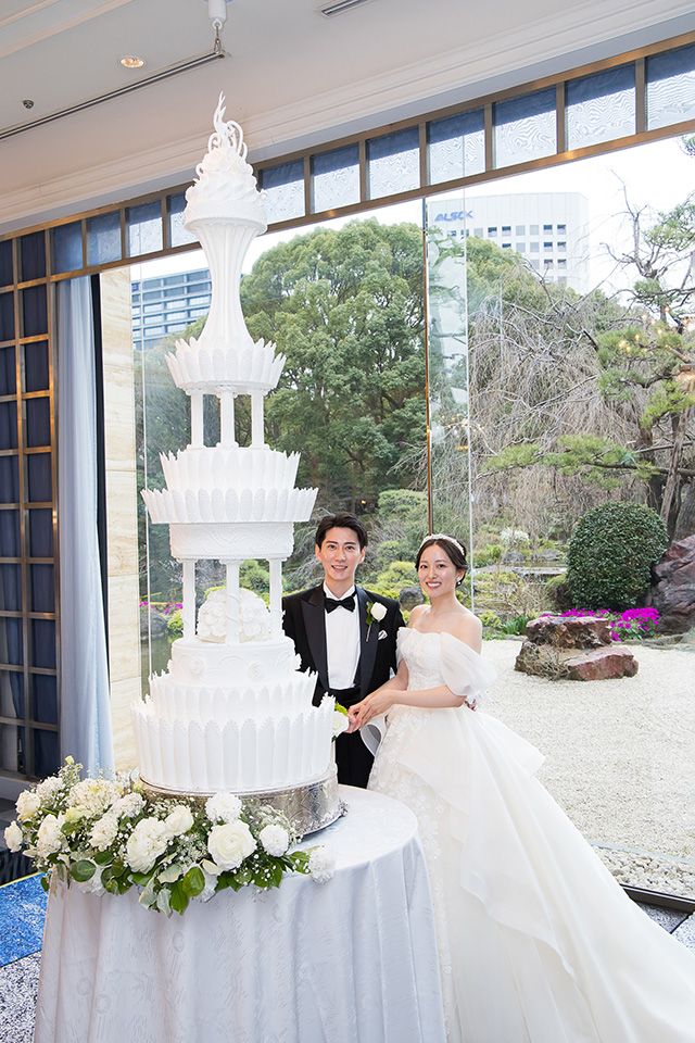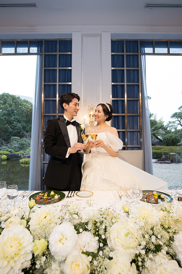 A ホテルニューオータニならではの演出や和洋折衷のコース料理は「とても豪華だった」と参列者からも大好評でした。また、日本庭園が見れる鳳凰西の間で披露宴ができてとても嬉しかったです。2次会ではホテル内のレストランを利用させていただき、移動の負担を軽減することができました。