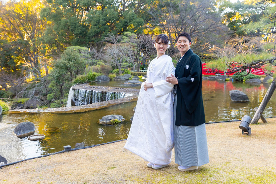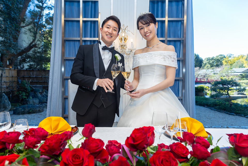 格式ある披露宴会場に加えて会場から見える日本庭園も素晴らしく、披露宴後に日本庭園に立ち寄ったゲストも多かったようです。